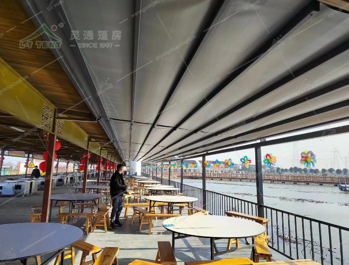 1.靈活伸縮調節:移動伸縮篷房可通過軌道或液壓系統自由控制篷體開合,按需調整空間大小,適配不同場景的面積需求。